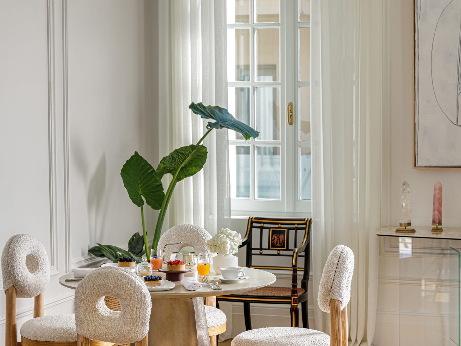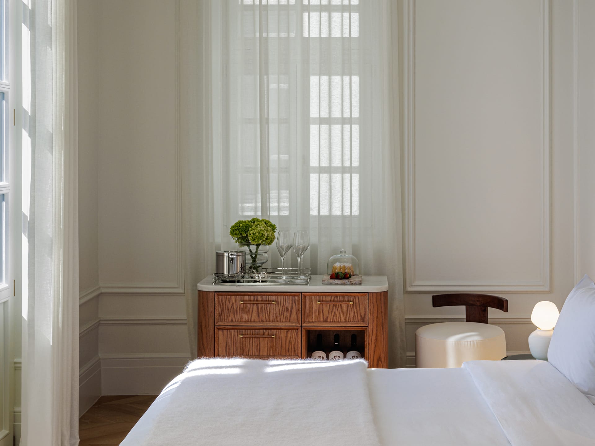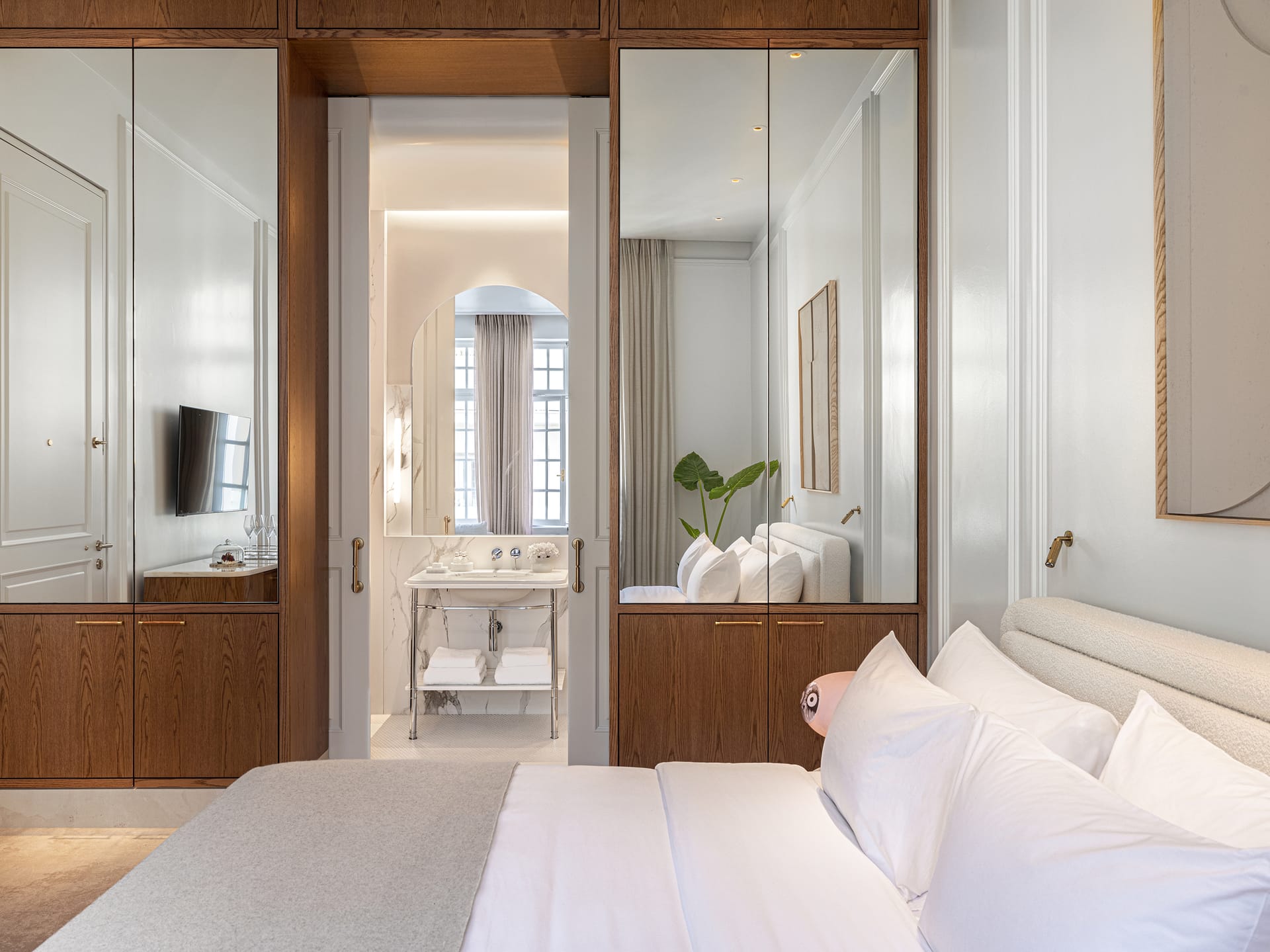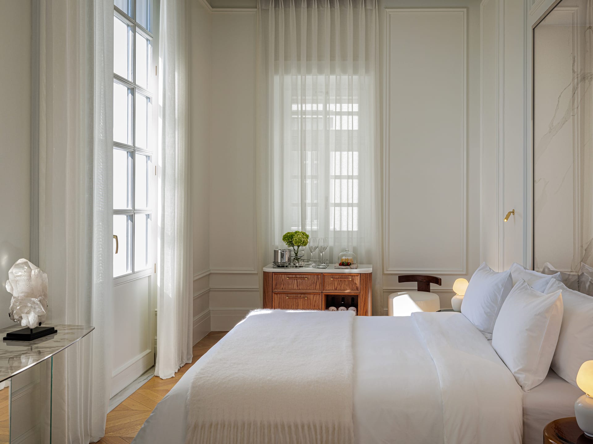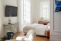 A Pied-a-terre and a Deluxe Room are assembled to create the ultimate apartment type, which comes hand in hand with breath-taking Acropolis views. Two separate master bedrooms with en-suite bathrooms, each one with its very own cosy sitting space, and a beautiful private sitting & dining room, which can sleep up to 1 kid and comes of course with its own marble bathroom, blend in together to welcome up to 4 adults, or a large family travelling with a baby that seeks togetherness and privacy all in one. Exquisite furnishings and priceless antiques, precious original artworks, custom-made beds facing the Acropolis, especially designed floor-to-ceiling mirrored closets and smart traveller’s wardrobes, an abundance of space and natural light are combined to form a sui-generis accommodation experience. Acropolis Supreme Apartments are located exclusively on the third and fourth floor of the hotel.
