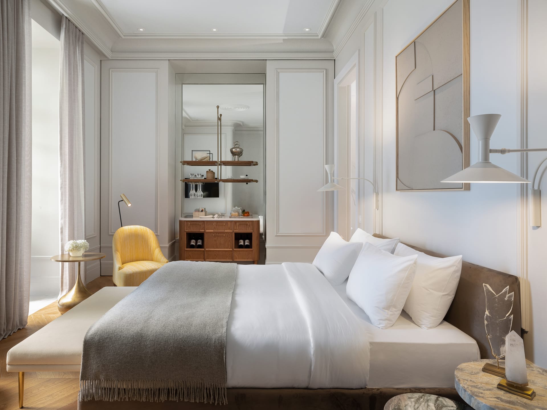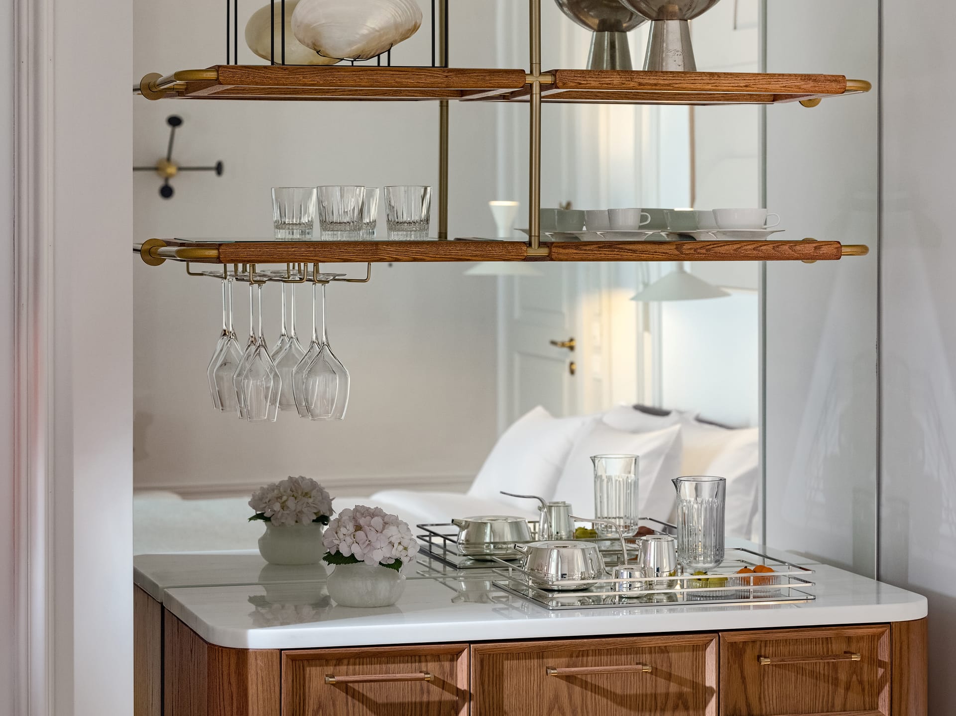Depending on the number of guests, 2 or 3 room types can be connected. Each room comes with its own en-suite bathrooms. Soft fabrics and natural textures, precious artworks, custom-created furnishings, decorative objects, and tailor-made beds, beautiful personal bars, coffee & tea stations, and spacious wardrobes complement each other in these amazing family apartments. The 3.5 metres high ceilings offer an extra touch of elegance and style to this accommodation option, characterised by authentic luxury and gracefulness. Family Apartments are located on the first and second floor of the hotel.